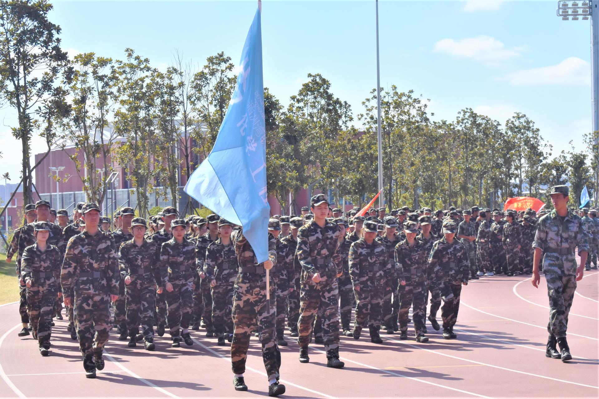 在教官的带领下,同学们都迈着整齐有力的步伐走到操场上,有序地等待彩排的开始,在这期间大家不敢有丝毫的放松。伴随主持人的介绍,我系22级学子穿着迷彩服迎面走来。一招一式、一脚一步,背后都是教官不停的研究和琢磨,每一个动作都是同学们辛苦几倍的训练成果。同学们目视前方,踏着整齐、坚定而又自信的脚步,严谨有序地接受检阅。此次彩排的具体项目有千人字针、擒敌拳、刺杀操等多项内容。每个项目彩排都非常的精彩,这让许多人也期待最终正式的汇报演出。