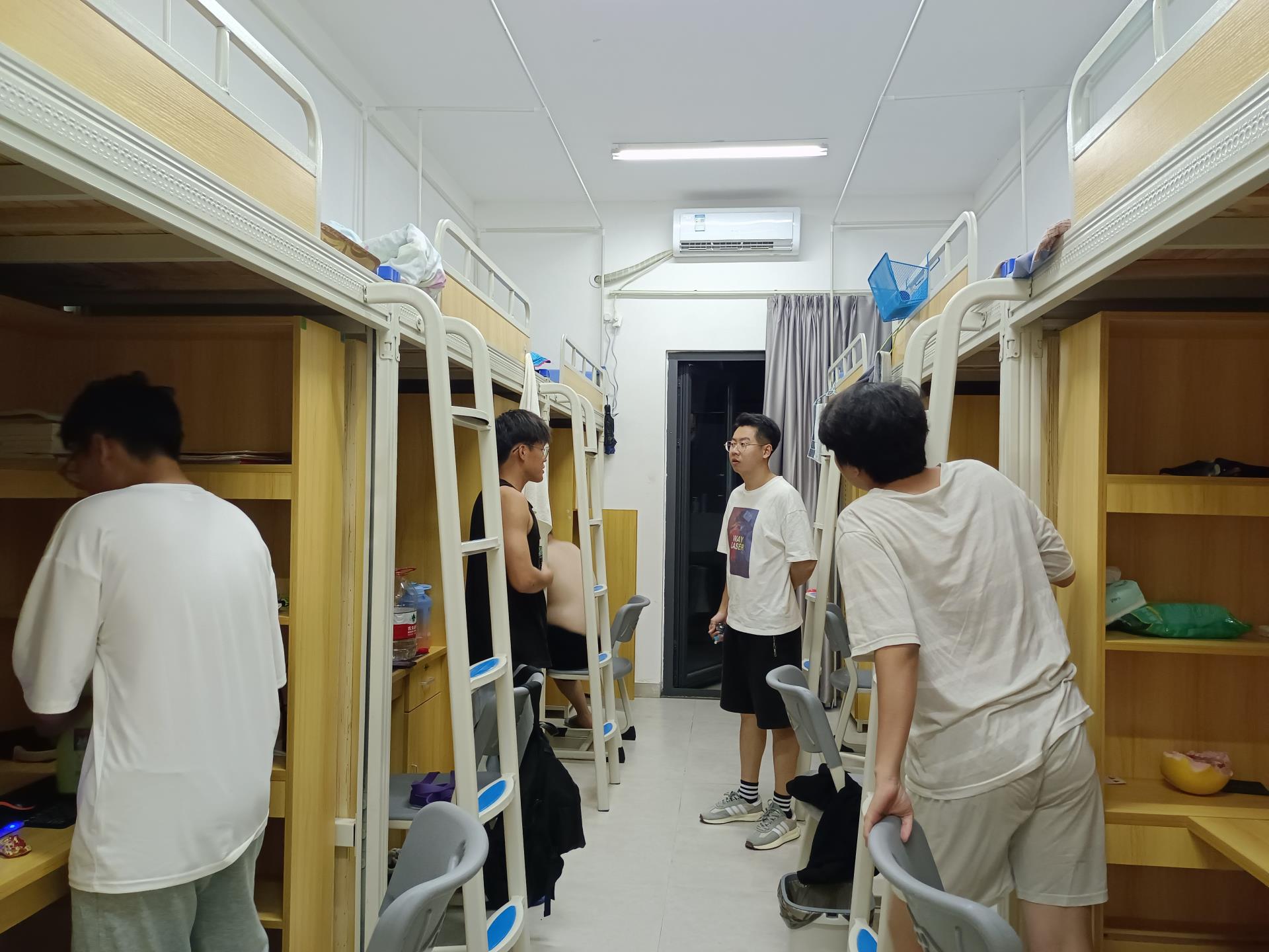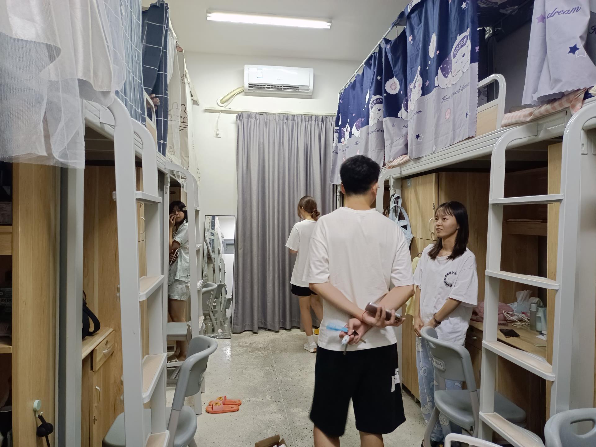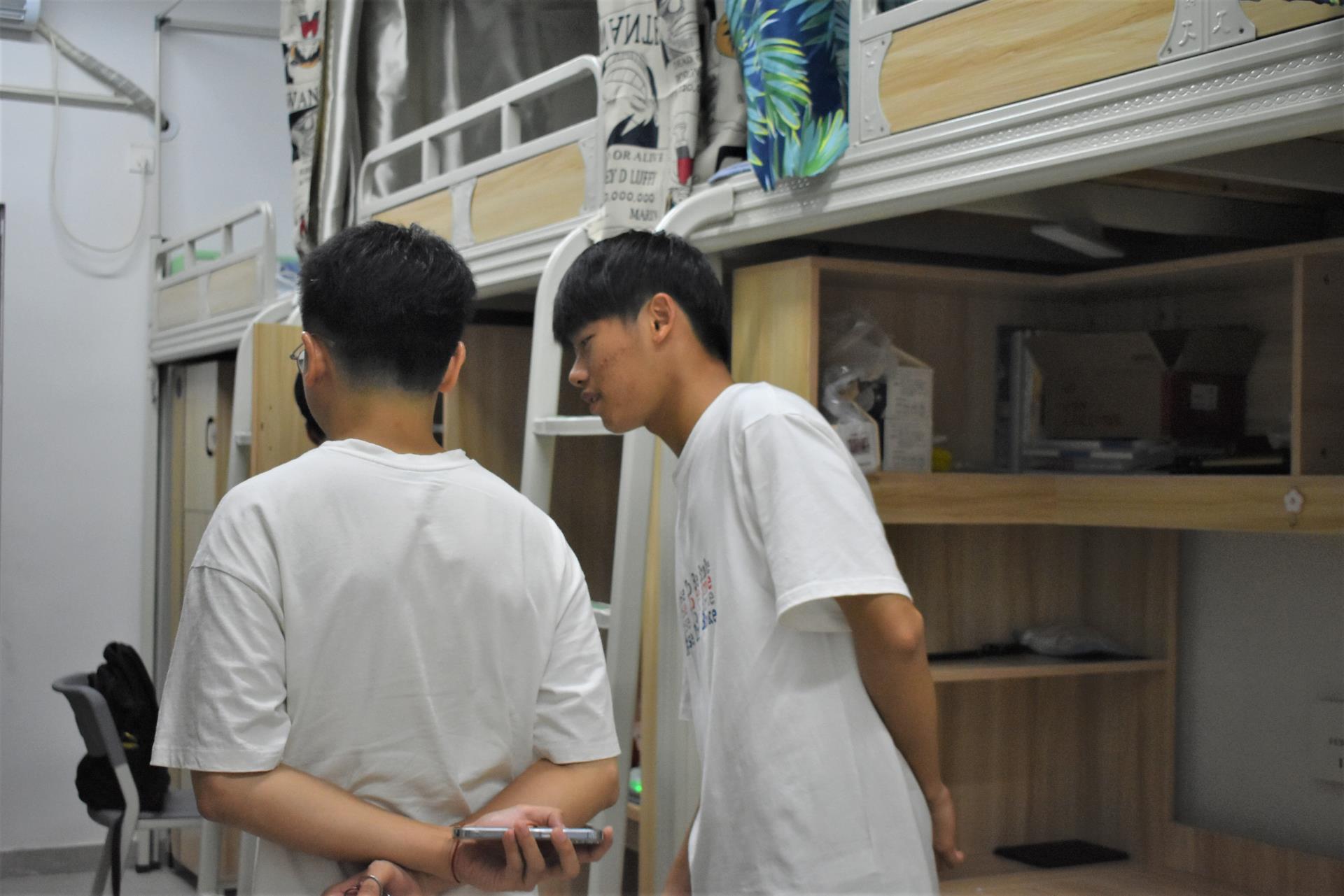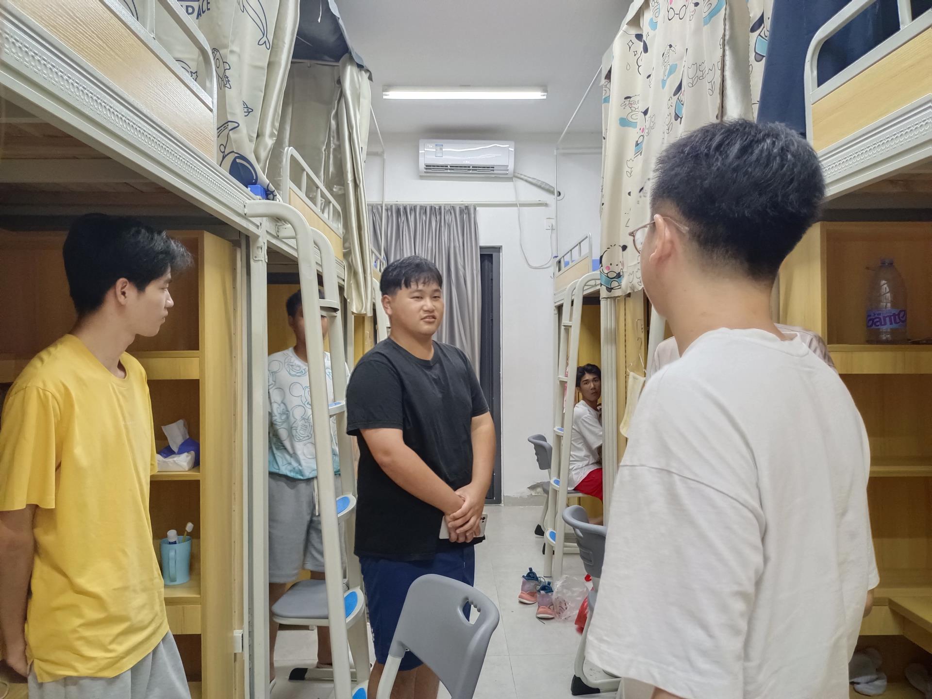 走访过程中,翁东旭辅导员与22级学子亲切交流,详细询问同学们返校感受,且细心叮嘱同学们空调不要开得太冷,注意预防感冒;注意卫生、垃圾分类;对于开学初的推销以及网络诈骗等保持高度警惕,不随便扫码。做好宿舍疫情消杀工作,定期通风,做好个人防护,并鼓励同学们快速融入新学期学习生活,建立和谐融洽的人际关系,同时要加强自身德智体美劳全面发展,努力成为新时代优秀青年,并叮嘱同学们要严格遵守疫情防控期间校园管理要求、做好疫情防控常态化下的自我管理和个人防护。最后,翁东旭辅导员表示大家来自各个地方汇聚到一个屋檐下,要学会互相学习互相包容,互帮互爱,建立和谐的同学关系。