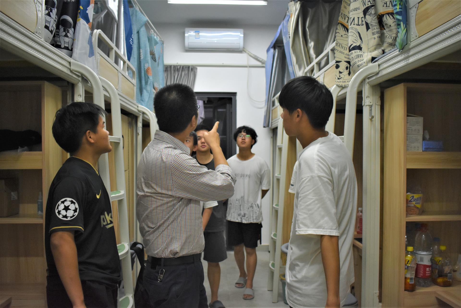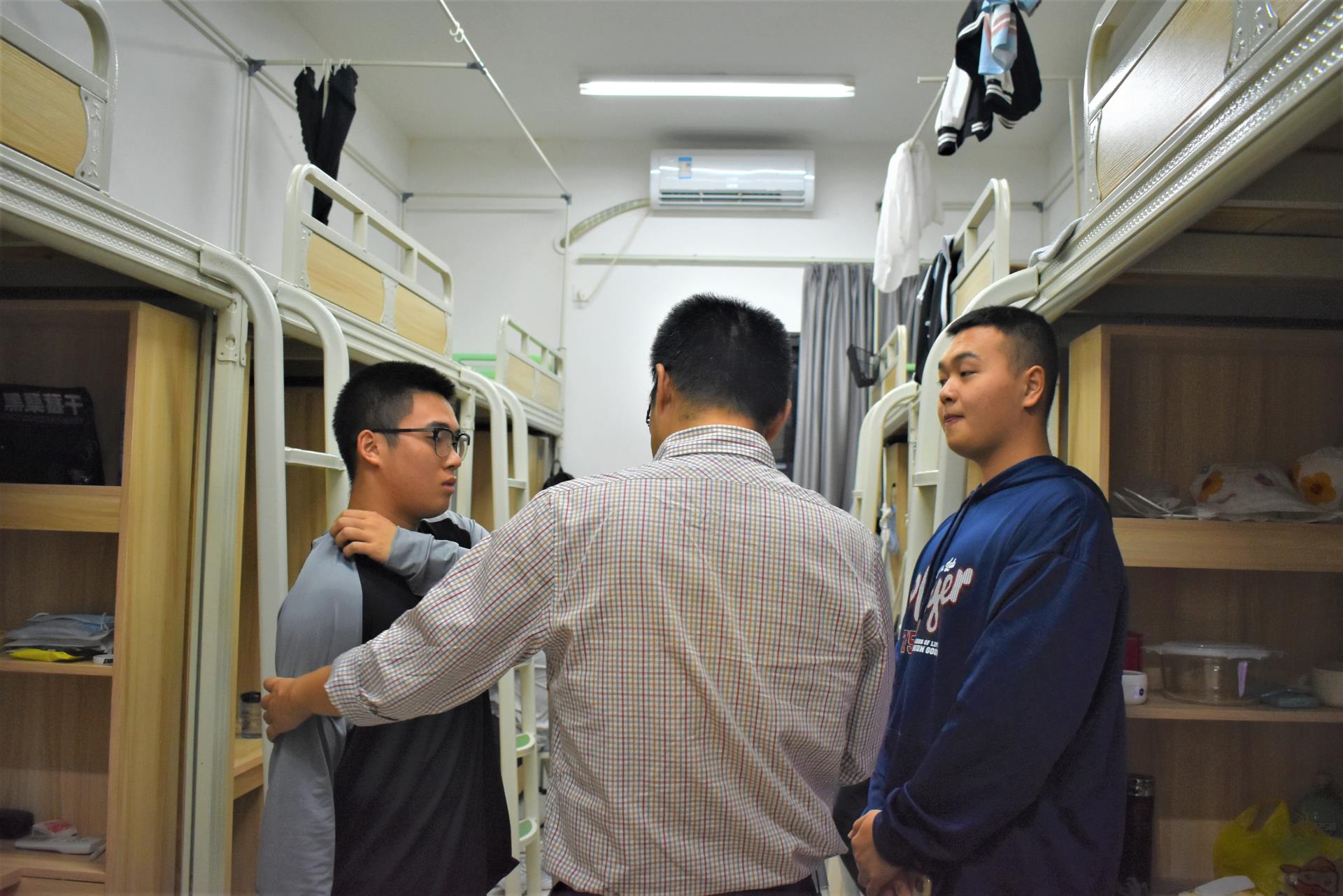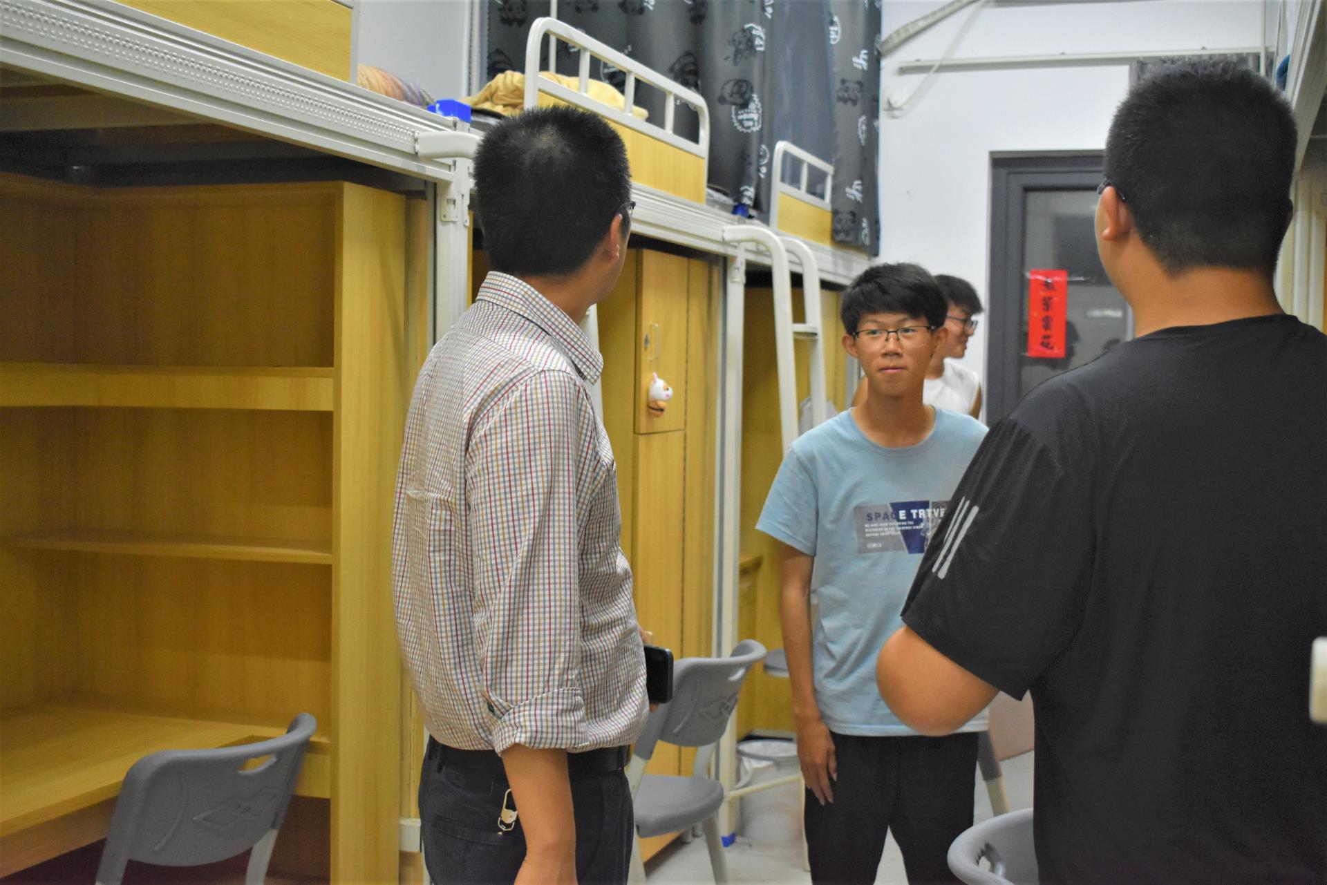 走访中,黄林毅书记和同学们进行交谈,关切地询问同学们的思想、学习、生活状况,叮嘱大家要严格遵守学院疫情防控要求和校规校纪,提高疫情防控责任意识,做好个人防护,养成良好的生活作息习惯。交谈中黄林毅书记强调同学们要在意识上重视宿舍环境卫生,定期做好打扫、通风、消毒工作。并叮嘱同学们要团结、互助,注意安全用电,增强宿舍财物保护等安全意识。