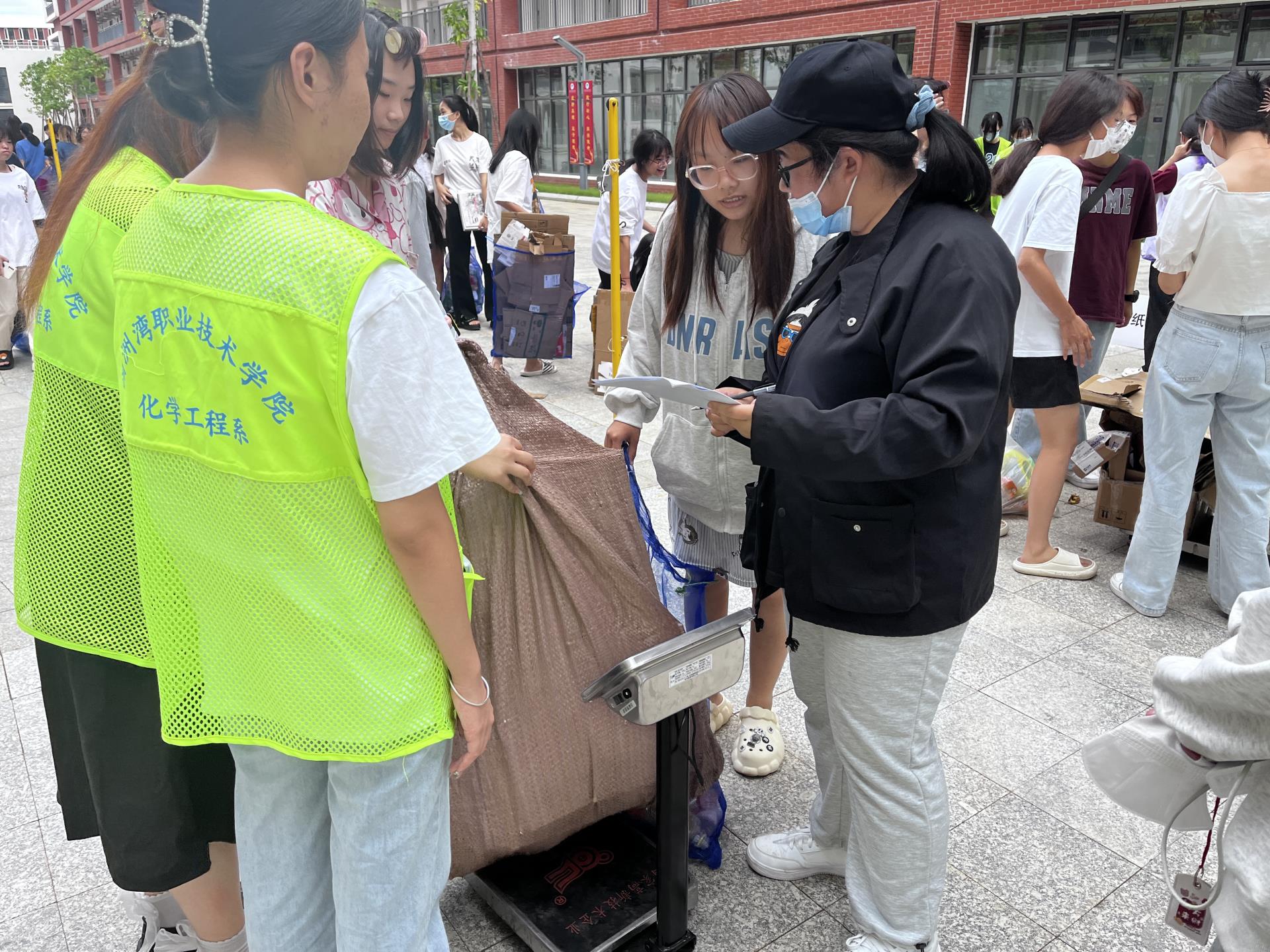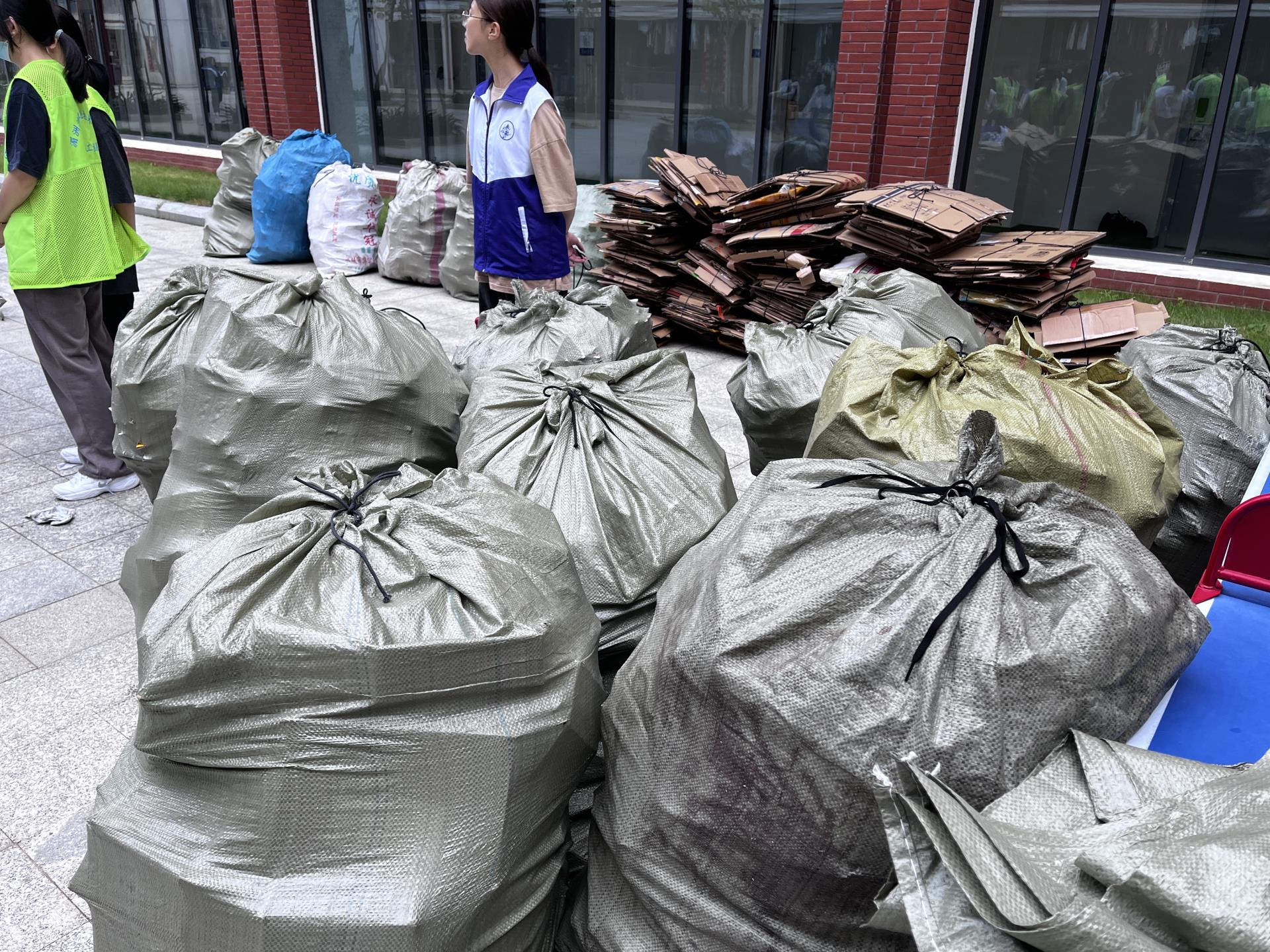 在活动中,我系志愿者们和兰苑工作站的志愿者们热心且积极地工作着,每个志愿者各司其职,指导同学们将带下来的垃圾投入正确的蓝色框中,并将同学们投放好的纸箱瓶子进行分类、称重、记录以及进行收纳打包,垃圾分类现场热火朝天,没一会志愿者们就收拾出好几大袋的“成果”,垃圾分类志愿者们用自身行动影响大家,增强同学们垃圾分类的环保意识,引导同学们树立低碳生活的理念,促使积极参与到实践中来,营造更好的校园环境。