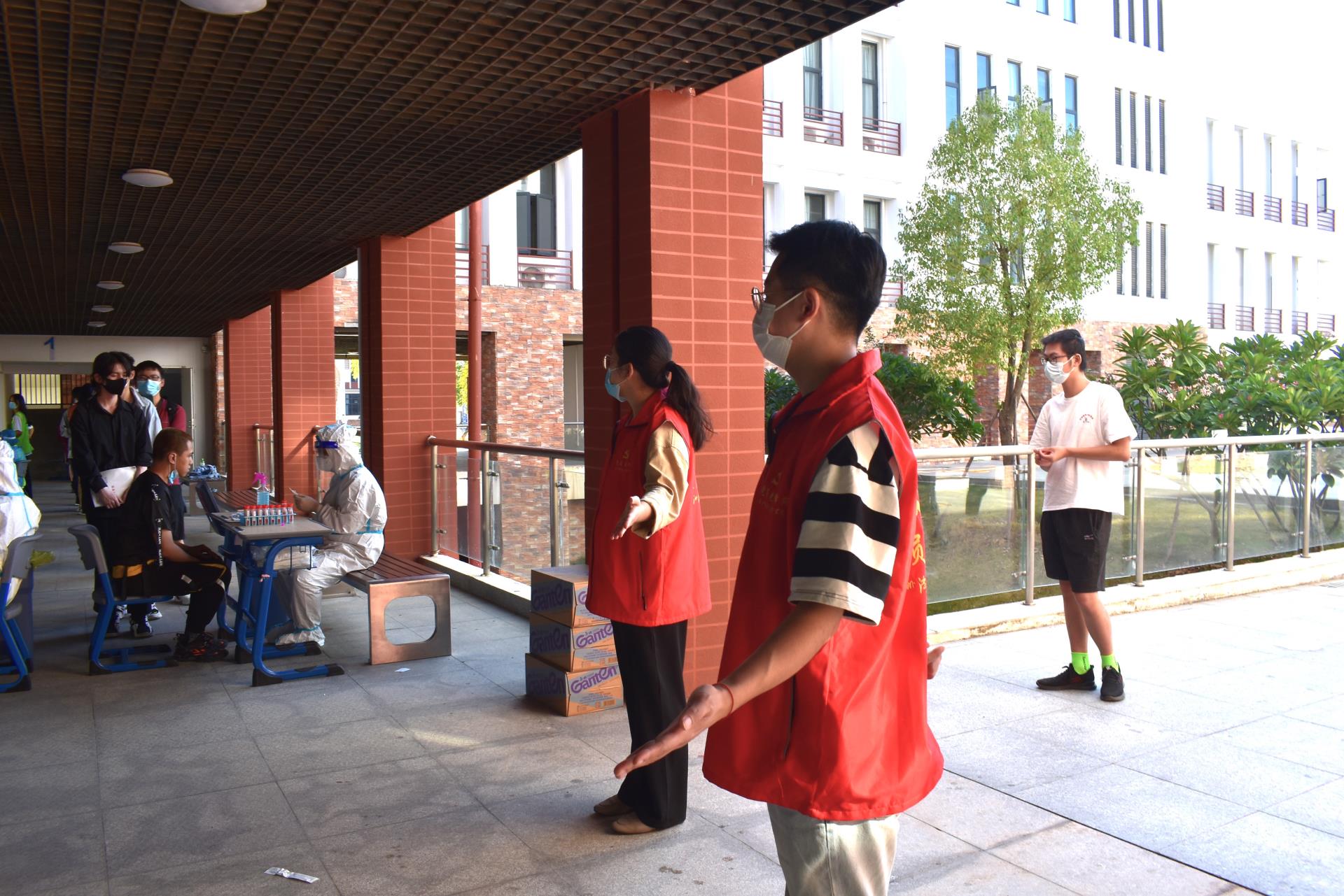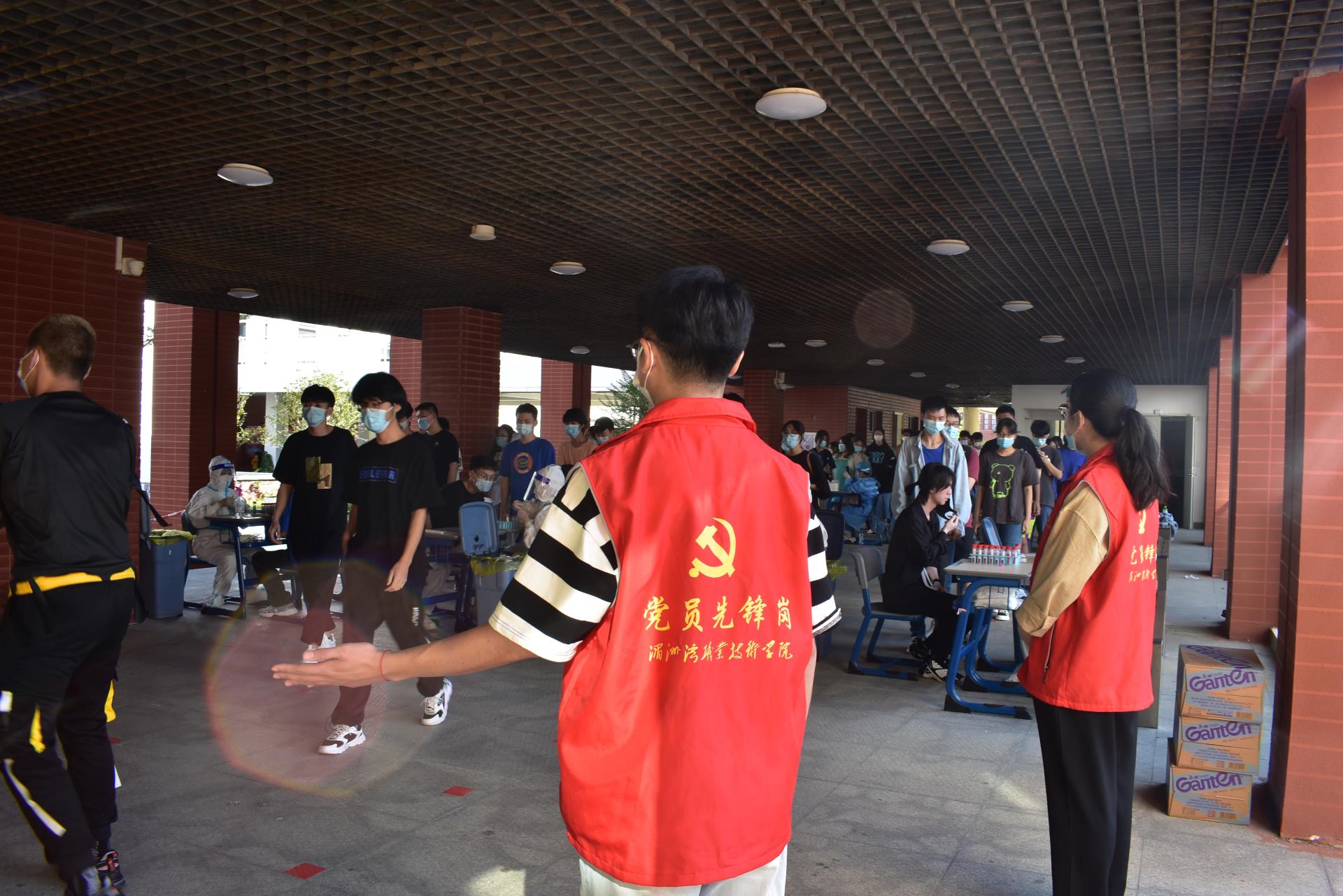 为全力配合疫情防控工作,进一步做好核酸检测的准备工作,筑牢校园疫情防控屏障,保障师生身体健康和生命安全,10月24日下午14:00,学院开展了新一轮全员核酸检测工作,我系党员教师与学生志愿者们积应学院号召,主动参与核酸志愿者服务。