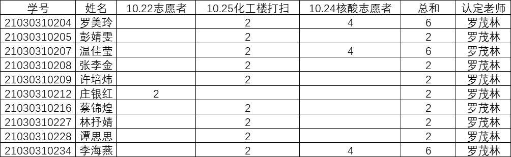 化学工程系10月份(10月22日~10月30日)志愿时长认定表来咯~