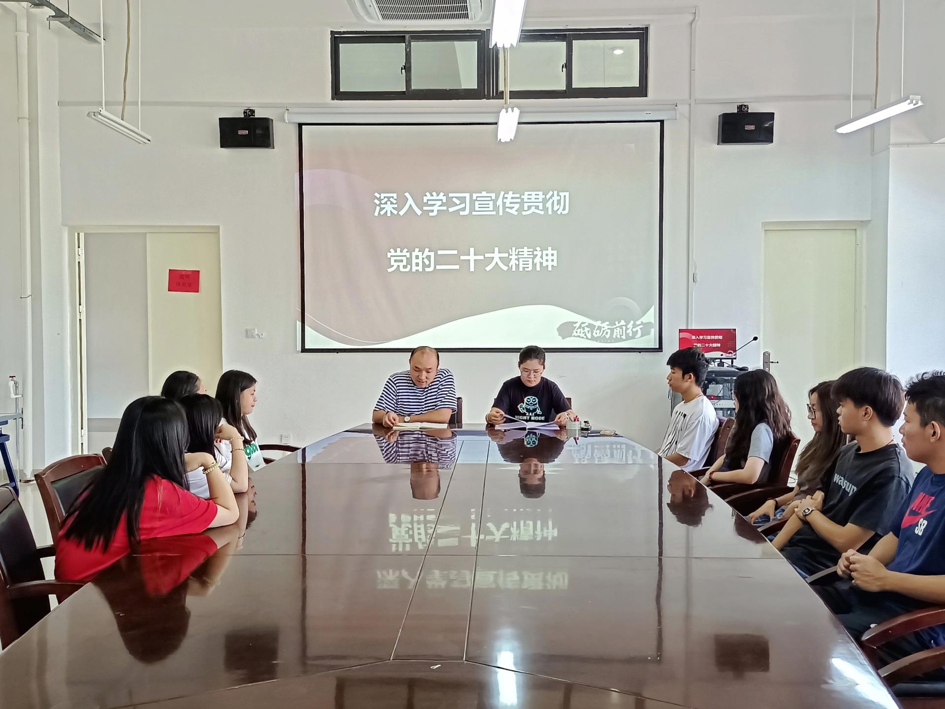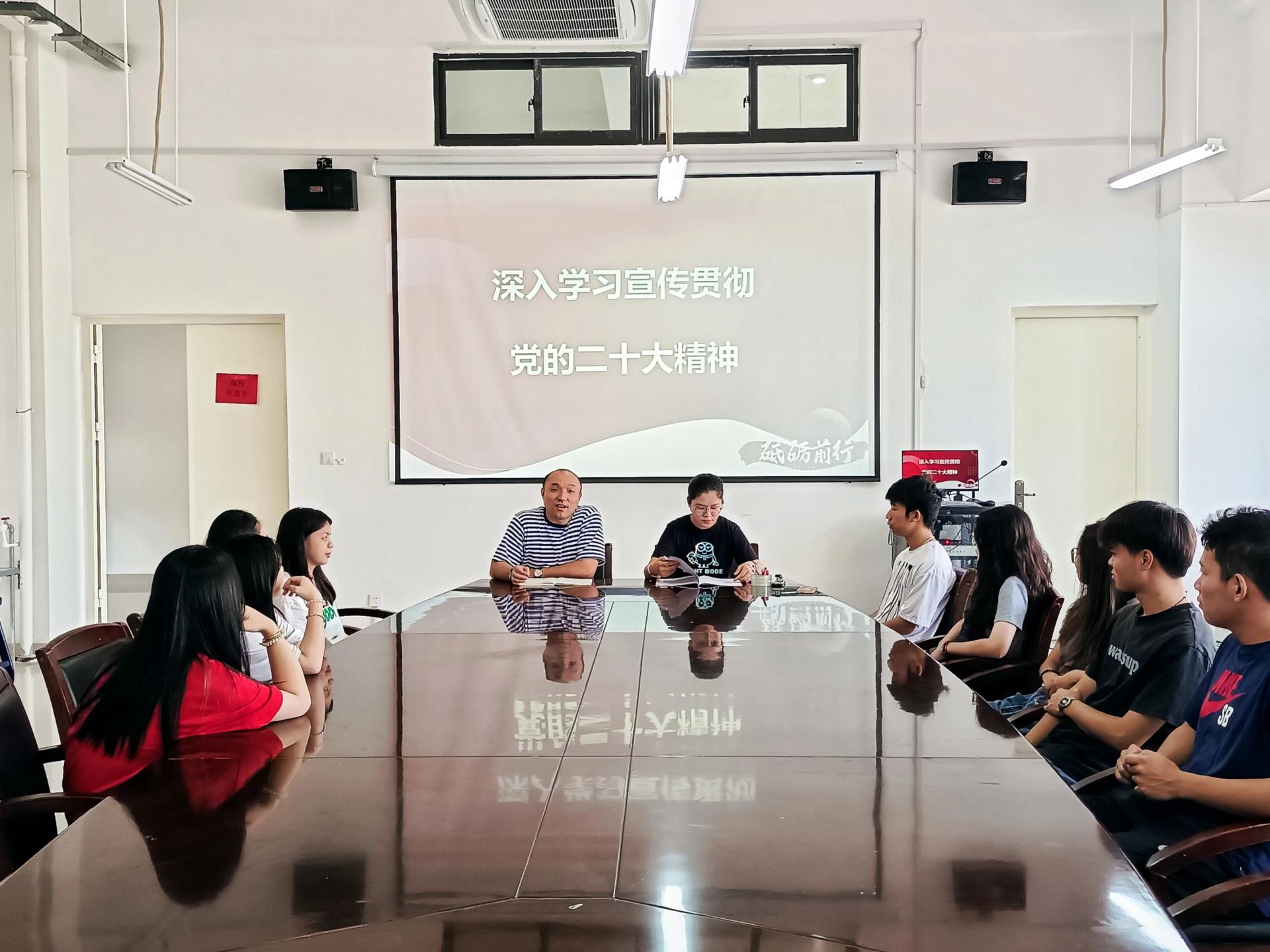 习近平总书记在党的二十大报告中表达了对青年一代寄予的殷切期望,青年是社会主义现代化建设的主力军。为引导同学们深入学习党的二十大报告中的重要精神,明确自我使命,听党话,跟党走。11月22日,我系翁东旭,蔡梦杭和罗茂林辅导员深入学生宿舍、走入学生课堂带领学生学习党的二十大。