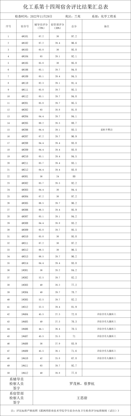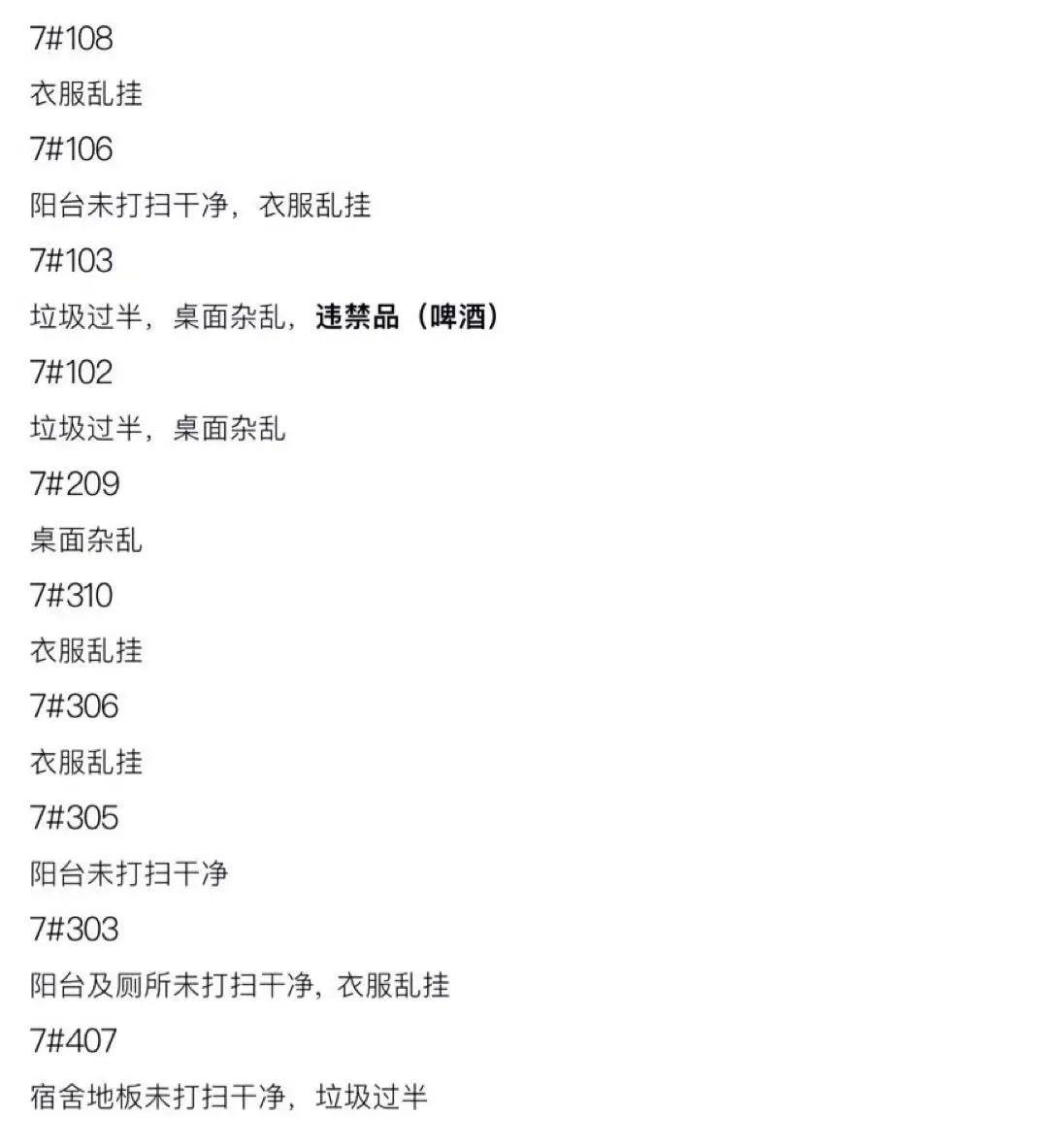 兰苑4#204 不及格宿舍及原因(男)