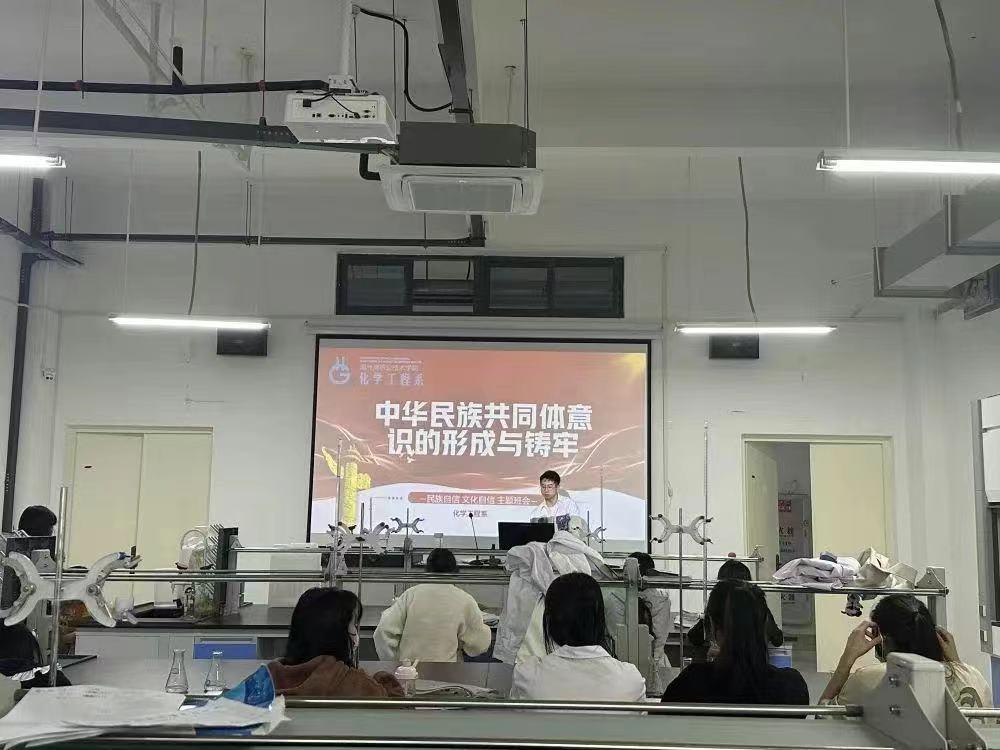 为在广大学生中形成并铸牢中华民族共同体意识,树立正确的国家观和民族观,促进民族团结进步,培育和践行社会主义核心价值观,4月23日,化学工程系开展“中华民族共同体意识的形成与铸牢”主题班会,本次主题班会由辅导员翁东旭主持。