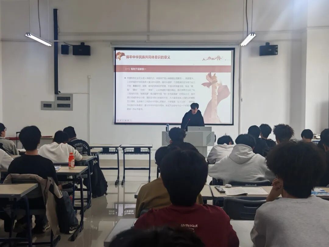 活动伊始,辅导员通过理论讲解、视频展播等形式,系统阐释了中华民族共同体意识的核心要义。同学们深入学习中华民族多元一体的历史渊源,领会民族平等、团结、互助、和谐的基本原则,进一步增进对中华民族共同体的思想认同和情感认同,不断夯实团结奋斗的思想根基。
