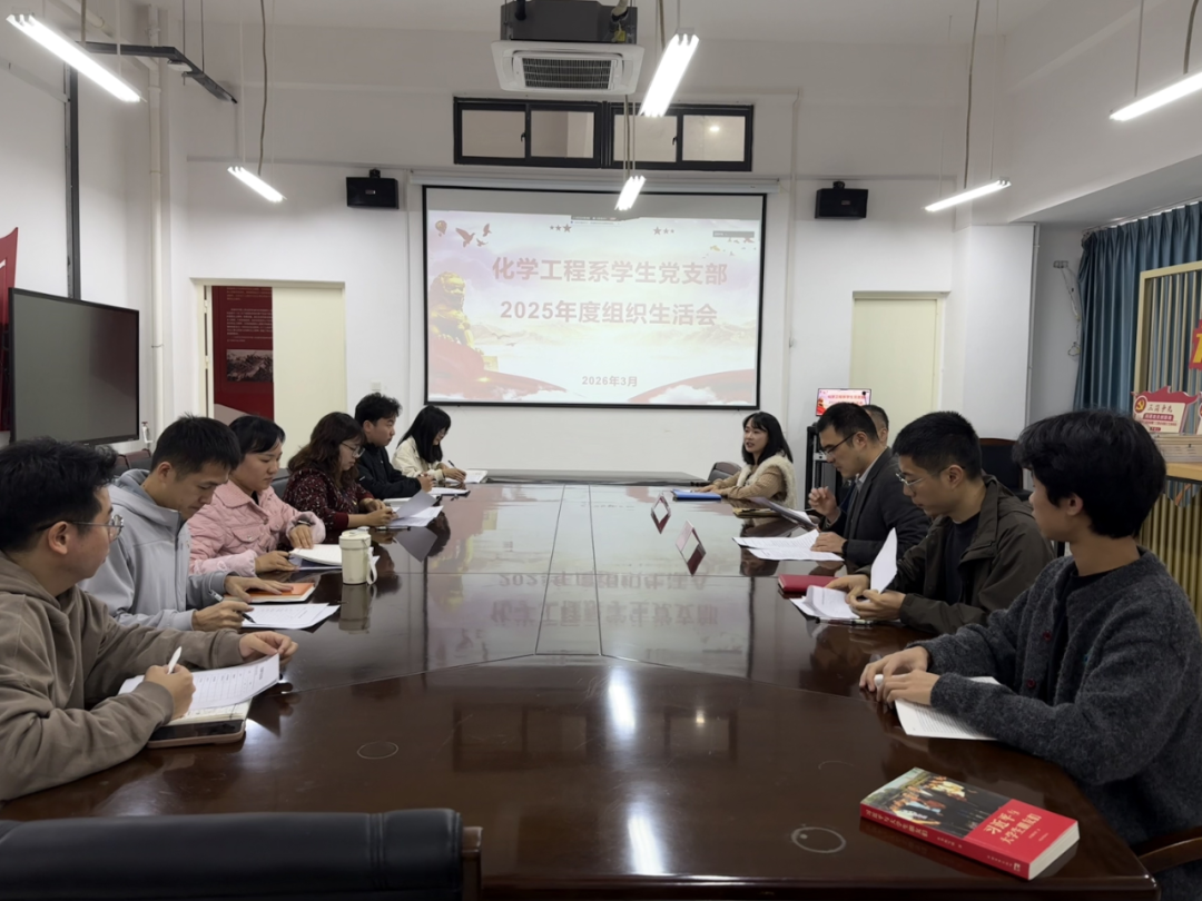 3月26日,化学工程系学生党支部在化工楼党员活动室召开2025年度组织生活会暨民主评议党员大会。会议紧扣“学思践悟强党性 知行合一担使命”主题,深入学习贯彻习近平新时代中国特色社会主义思想和党的二十届四中全会精神。学生党支部杨敏同志主持会议,支部全体党员参加,学院团委书记吴凡、系党总支副书记黄林毅到会指导。